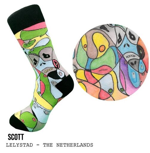 Sinds vorig jaar is er ook een Lelystadse sok, ontworpen door Scott.